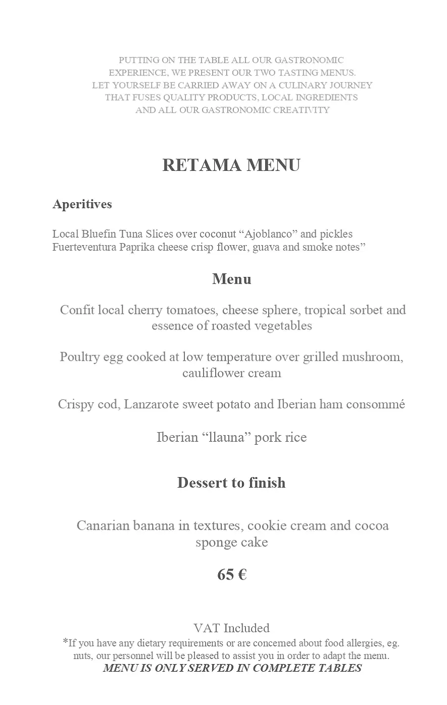 Sunday lunch Menu